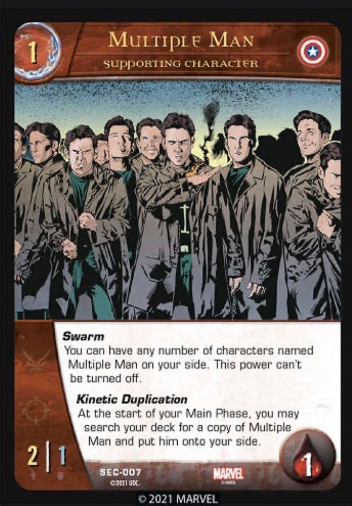 In VS system 2PCG one card that gains board advantage is Multiple Man, each turn it can search for a copy of itself to put into play. Another way to gain board advantage is to play units your opponent has a harder time interacting with. Raiden for example has flight, if he’s played in your front row he can fly over your opponents front row to attack characters in their back row. Unless a front row character your opponent controls also has flight then they would protect that back row character. So playing flight or ranged units when your opponent can’t interact with their own stuff is another way to gain advantage on the board state. This relates to SWU in regards to the space and ground arenas, since we are managing 2 areas having cards or abilities that can interact with either or both I think will be important for maintaining board control.