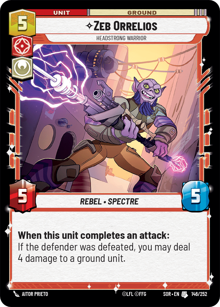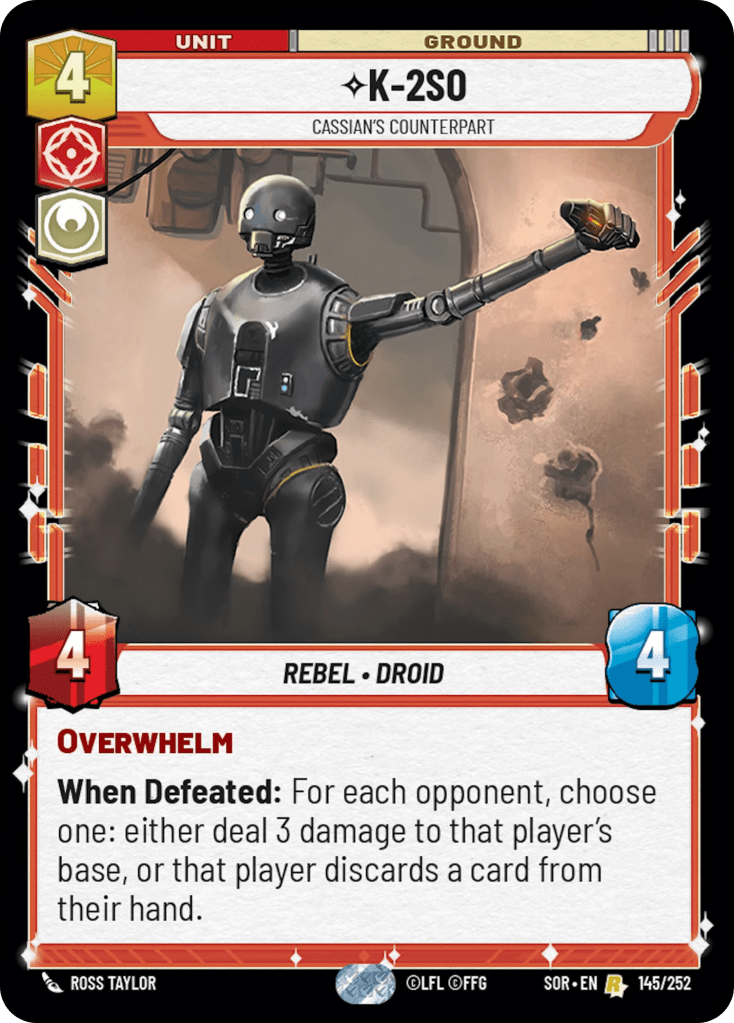 Next I’m going to jump to the ground units, First card I’m adding is Ezra Bridger, I think he is super undervalued overall right now. He’s a 3/4 that gives you access to the top card of your deck which is super useful. Plus he’s a rebel so we have trait synergy. Next I’m adding K-2SO, he is one piece of my gameplan for this deck, Since he has that good when defeated ability and overwhelm he is a great heroic sacrifice target. Next I’m adding Zeb, his ability to go wide is pretty awesome and relevant against the aggro decks. Next I’m going with Sabine because I need to get to my 12 round 1 plays and she is a very solid 2 cost rebel unit. Next I’m adding Leia, she is flexible and can help if I need tempo and can also be a control card. Then for now I’m going to add the rebel pathfinder as my last round 1 play for now. Since it’s a cheap 2/3 with saboteur that is a rebel I’m fine with it.