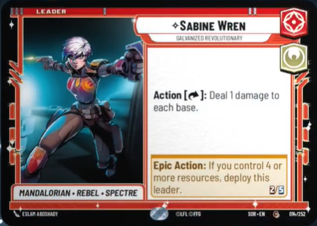 Boba Fett is one of the most beloved characters in all of Star Wars fandom. Having him as a good set 1 leader is a huge boom for the game. He’s decent in 3 different aspect pairings and is a ton of fun to play. I think we probably see as much Boba Fett as Sabine. I do think Boba Fett will be better overall.