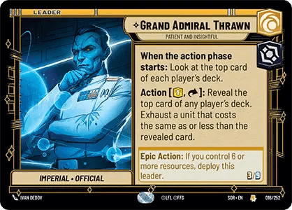 I know this isn’t much of a surprise but IG-88 and Thrawn are the two leaders that I think will stay in the most binders for set 1. I think we will see some Thrawn since he’s beloved by fans but just for the attachment and now the gameplay. I think both these heroes are a step or two behind everyone else right now. I think both leaders have potential but do not have the support needed currently. I do think IG will see less play due to his low health.