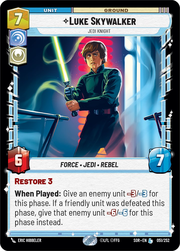 Luke Skywalker is an overall great unit, will delete something on play, huge restore 3 and is an absolute boss monster on the table, great late game play + force throw target to 1 shot most things on the board.