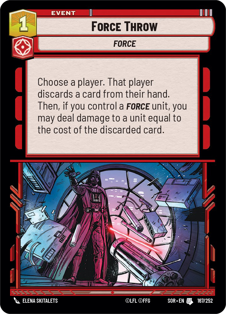 Force throw is a really great card in this deck, its kicker is almost always online and we can really hit anything we want with Luke and redemption plus screw with our opponents late when their hand size is small. Great utility card and this deck uses it better than most.